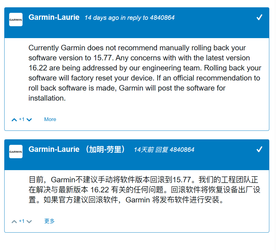 机型降级(飞耐时7系列、安夺2、易耐时系列)¶ 注意¶ 降级有风险,佳明官方不建议降级 功能¶ 上述机型固件降级到15.77版本 操作¶ 下载固件包 解压文件,把gupdate.gsp和force.tmp文件放在手表的Garmin文件夹中。 当您断开与计算机的连接时,手表将提示您安装此版本的软件。请注意,这将重置所有设置。